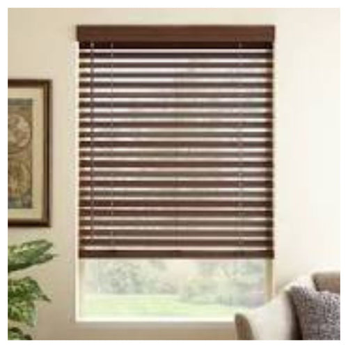 Wood Blinds Glowe Faux Smooth Brown Cordless Suburb Light Control