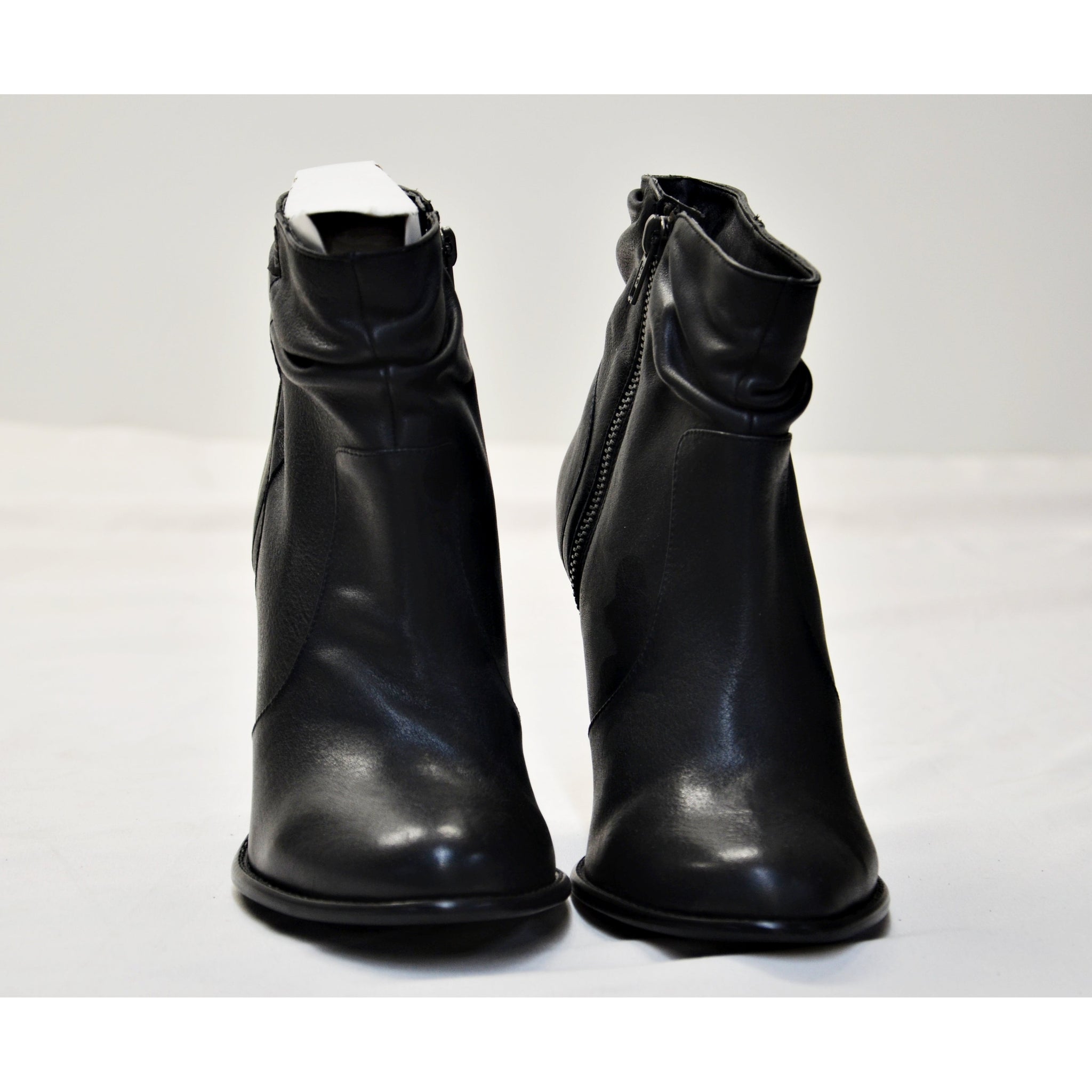 Harley-Davidson Women's Black Label Stonebrook 3.5-Inch Chunky Stacked Heel Slouch Bootie Boots. These plain toe, slightly slouched booties are sure to turn heads. Overall, tastefully simple with a diminutive silhouette Harley Bar Shield logo on the cuff. Side zipper eases putting on and taking off. Made with full grain leather uppers, features a full length cushioned sock lining. Lightweight outsole and heel. Soles are bonded using state-of-the-art cement construction for years of comfortable wear.