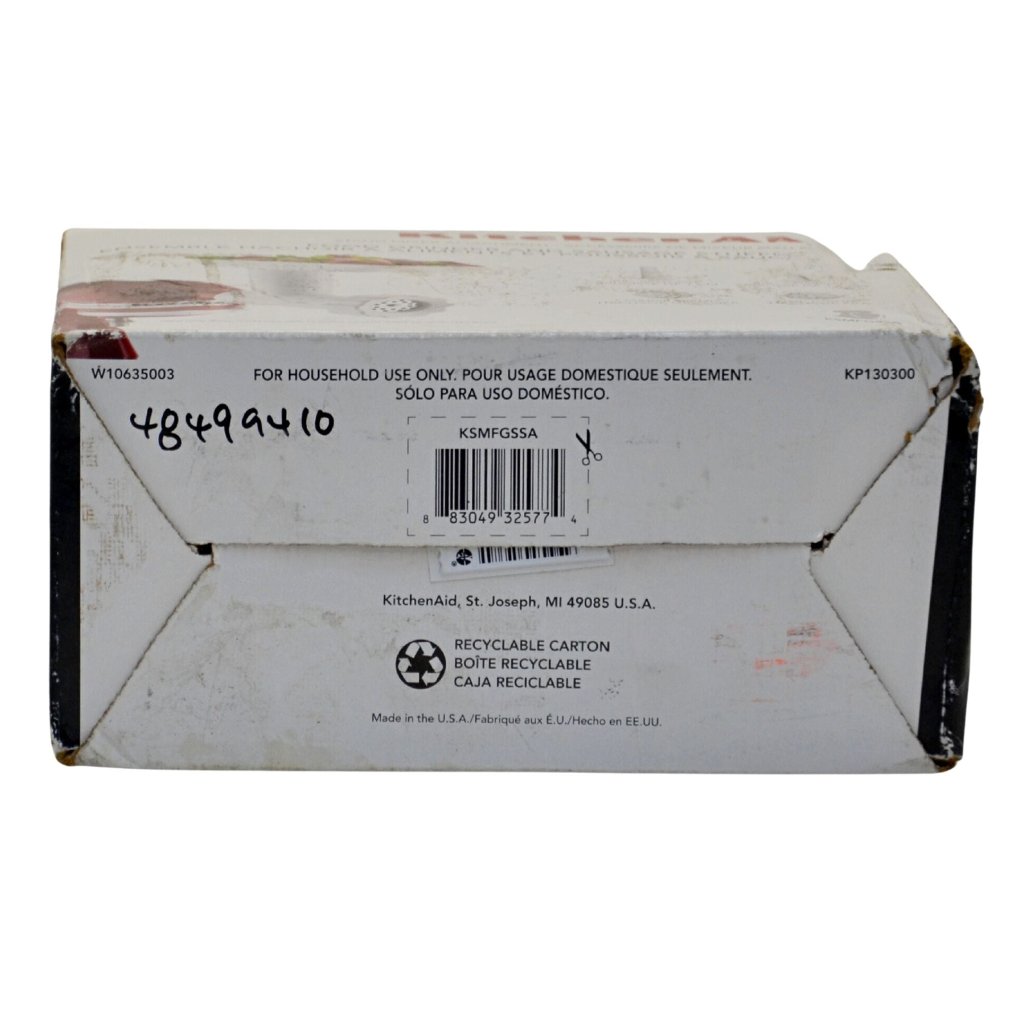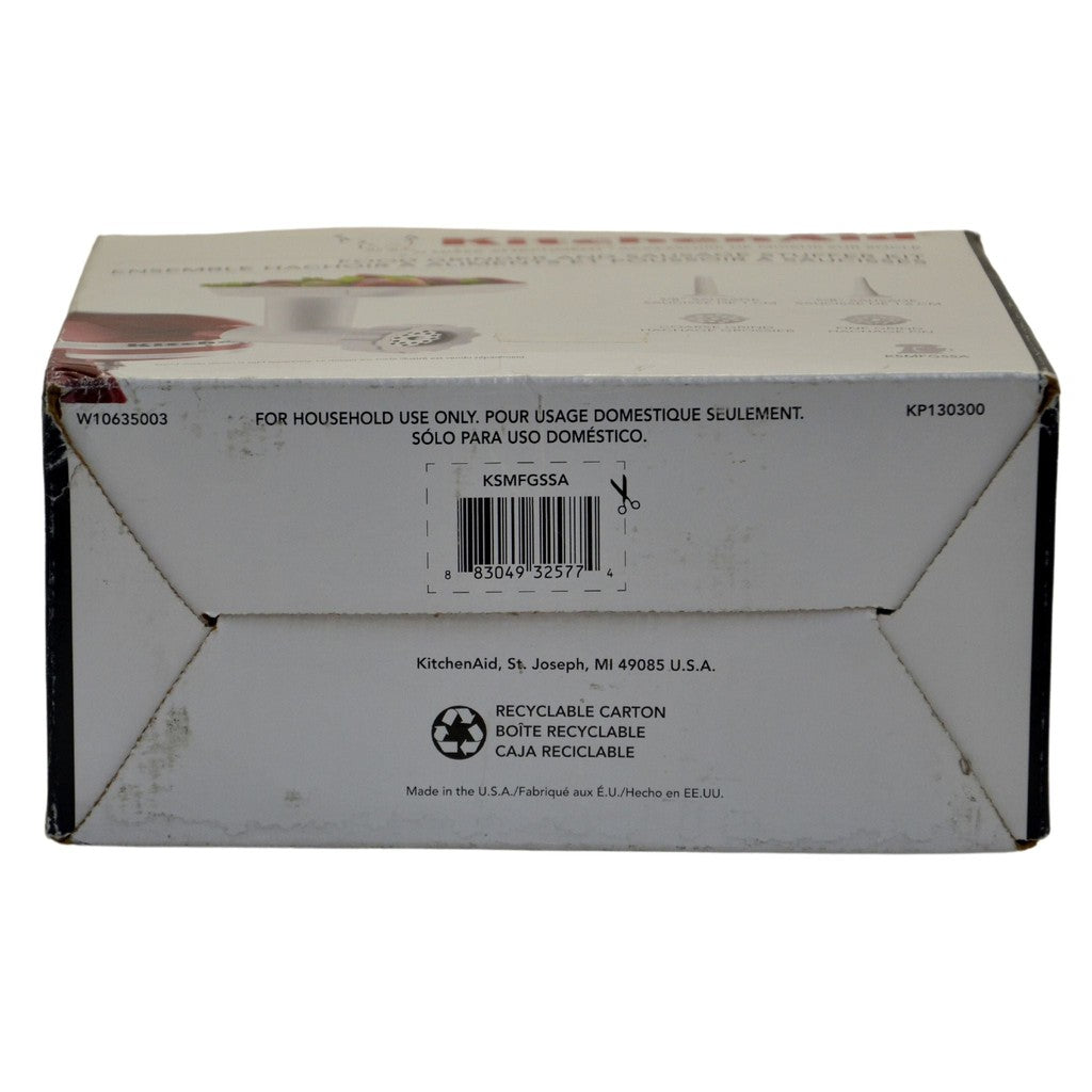 Box is damaged (see photos). Writing on the box. All attachment pieces and instruction booklet are there. No signs of use.