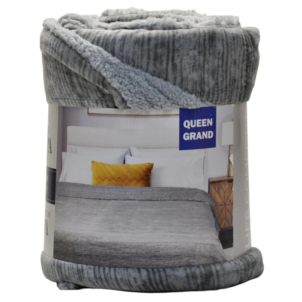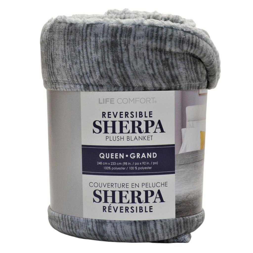 Life Comfort Reversible Plush Sherpa Throw Grey and White Queen