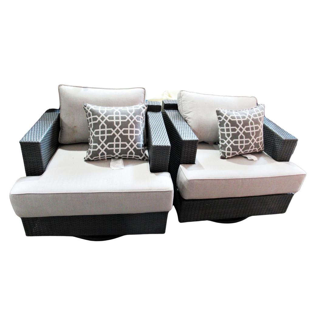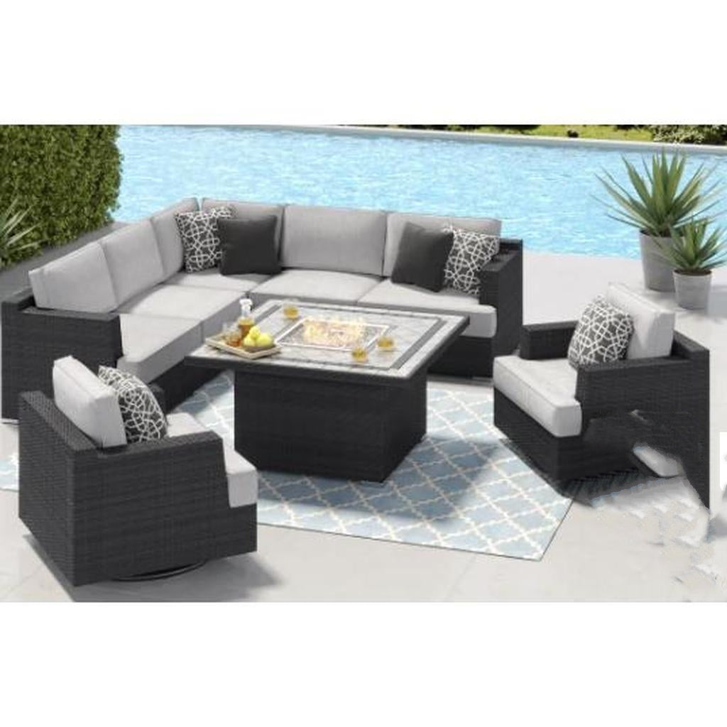 The Niko Classic 9-piece Sectional Conversation Set With Fire Table will be your most sought-out place to relax or for get-togethers, especially in the evening. All the pieces are made of tight hand-woven resin wicker covering a hand welded heavy gauge all-aluminum frame. The club chairs feature a gentle swivel & gliding mechanism. The seat and back cushions, as well as all accent pillows, are covered in Sunbrella® fabric, and the seat cushions are made with a high-density foam filling to optimize support and maximize comfort.