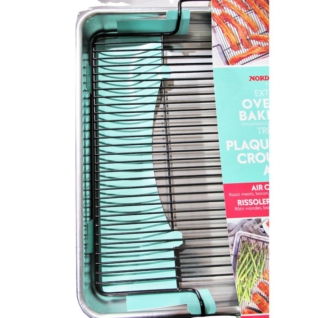 The Nordic Ware Extra Large Oven Crisp Baking Tray is your go-to baking companion for crispy, delicious dishes every time. Featuring a unique air-crisp design, you can bake all sorts of food with this tray, including roast meats, bacon, fries, and much more. Perfect for making sheet pan recipes like roasted vegetables. It ensures even heat distribution and effortless release with the nonstick rack, it's ideal for any kitchen!