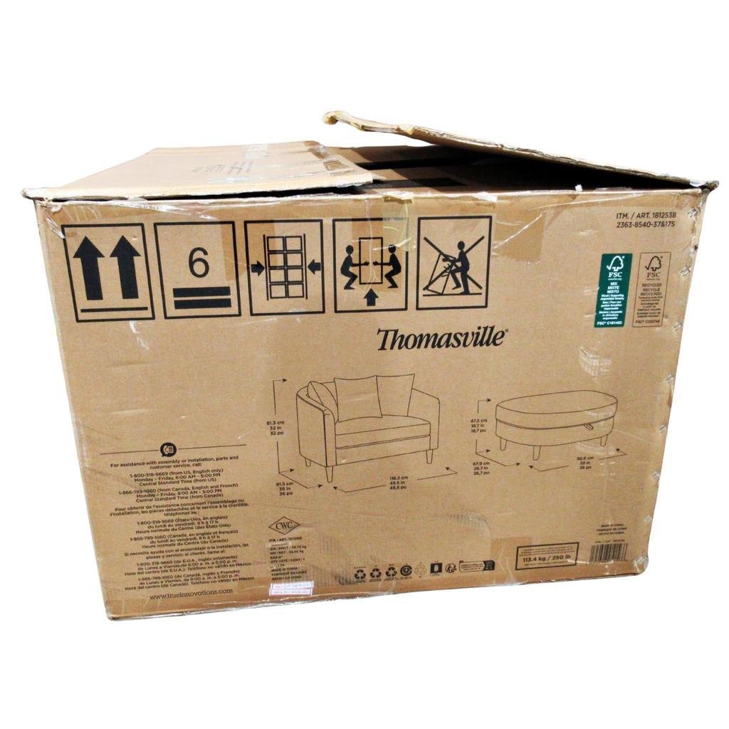 - Ottoman: 67.9 cm × 96.5 cm × 47.5 cm (26.7 in. × 38 in. × 18.7 in.)